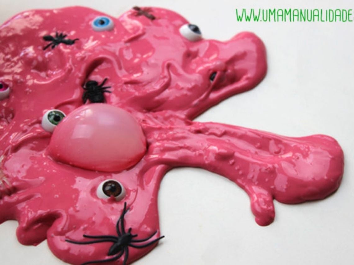 En este enlace os contábamos cómo hacer slime casero. Pues bien, si esa receta la modificáis añadiendo un poco de colorante(o sombras de ojos) color rosa o rojo, tendréis un slime que parecerá músculo humano.