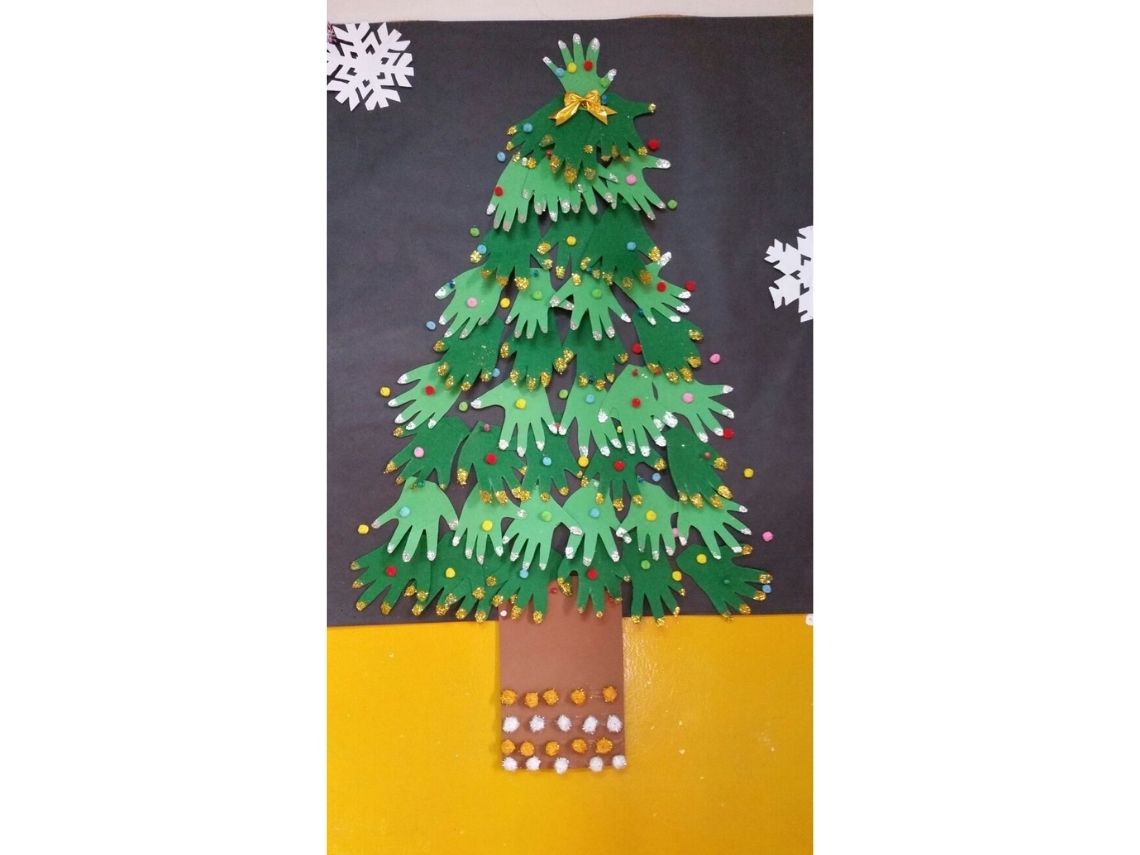 ¡Esta opción nos parece lo más! Pero debéis saber que tendréis que haceros con grandes cantidades de cartulina verde para llevarla a cabo. No hace falta explicación: las manos de los niños, colocadas a la inversa, formando un árbol sobre la pared. Sobre ellas podéis colocar adornos que también hayan fabricado con cartulinas de muchos colores.