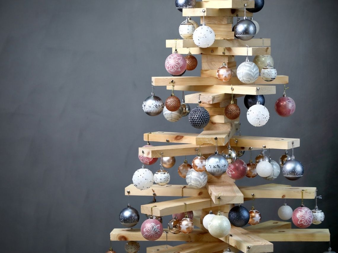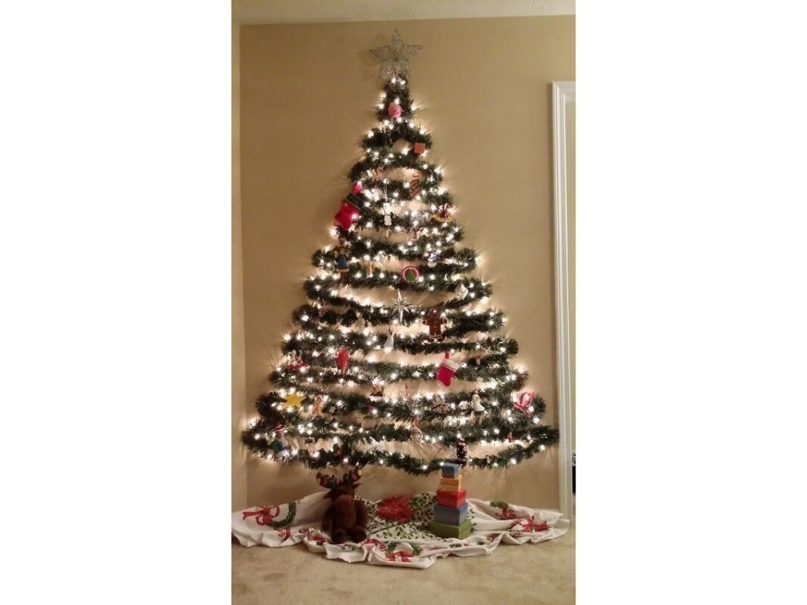 Si tenéis previsto dar paseos por el campo antes de poner la decoración de Navidad, esta opción puede ser perfecta para vosotros. Recopilad varios palos del campo (que sean lo suficientemente gruesos) y, al llegar a casa, ponedlos en orden e id cortándolos para crear la forma de un árbol. Después, podéis colocarlos todos en la pared, atarlos con una cuerda para que estén bien sujetos entre sí y decorarlos con lucecitas y bolas de Navidad.