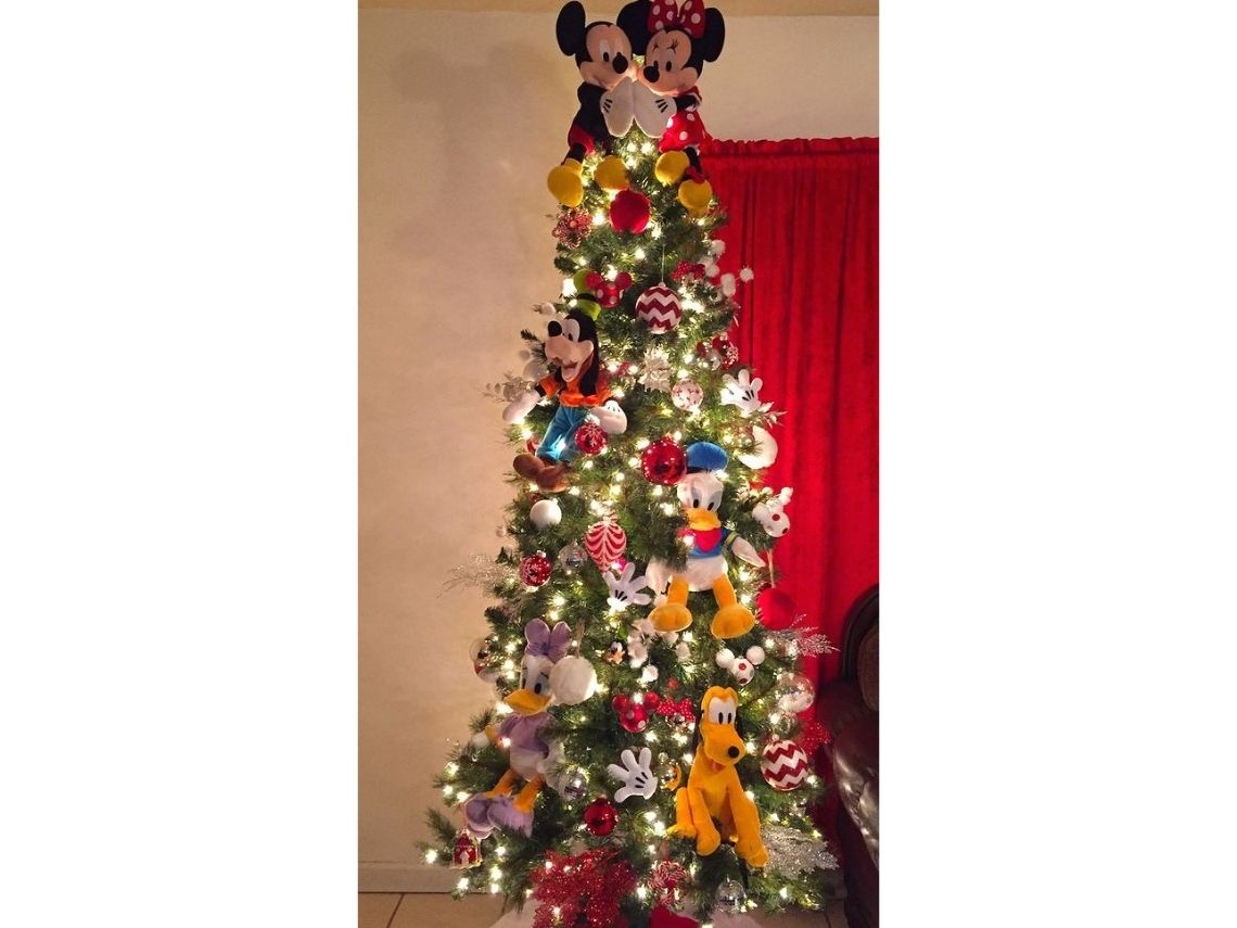 Uno de los modelos más atrevidos es este. Seguro sabéis por qué:¡tiene los juguetes de los niños a modo de decoración! Para poder recrearlo lo más importante es que calculéis si vuestro árbol aguantaría el peso de esos muñecos. Después, solo tendréis que haceros con unas cuantas bolas y unas lucecitas que vayan acorde y los niños alucinarán.