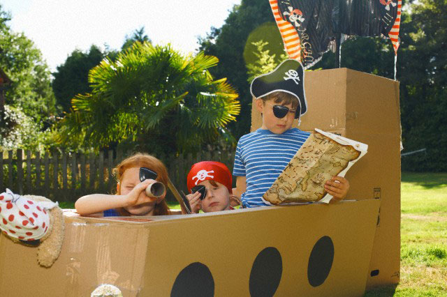 Con esas cajas de cartón que normalmente se tiran al contenedor puedes construir un montón de juguetes reciclados. Te proponemos un barco pirata, pero con un poco de imaginación podéis construir ciudades, castillos, casitas...