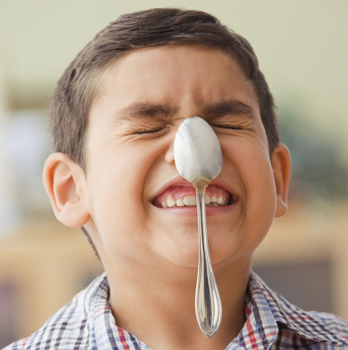 Frota el lado cóncavo de la cuchara sobre tu nariz para conseguir más fricción. Inclina gradualmente la cabeza hacia atrás y sigue frotando. Cuando la cuchara empiece a pegársete a la nariz, ¡suelta el mango!