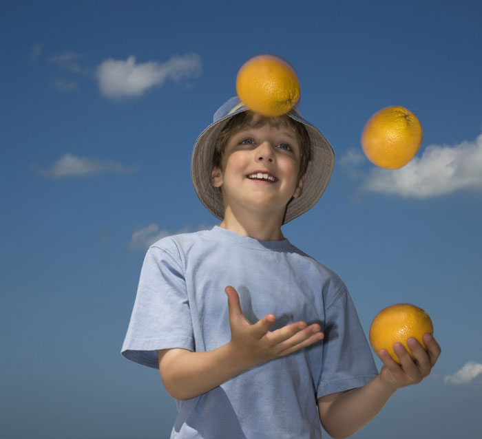 Practica con pelotas pequeñas o bolas rellenas de semillas. Puedes empezar con trucos sencillos e ir avanzando en complejidad.