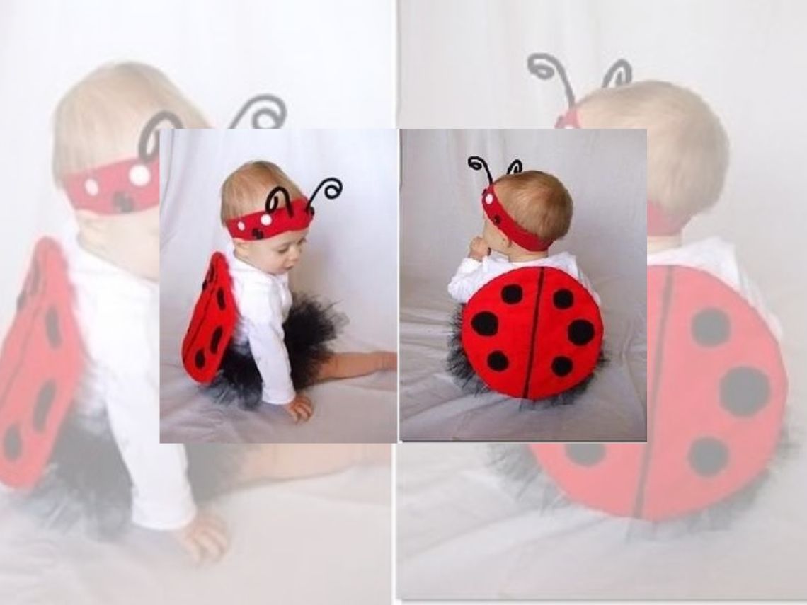 Un tutú negro, una camiseta blanca y un turbante rojo para ser la mariquita más mona.Para completar el disfraz podéis recortar un círculo rojo que sobresalga de su espalda en fieltro con unos cuantos círculos negros y pegarlo a su camiseta por la parte de atrás.
