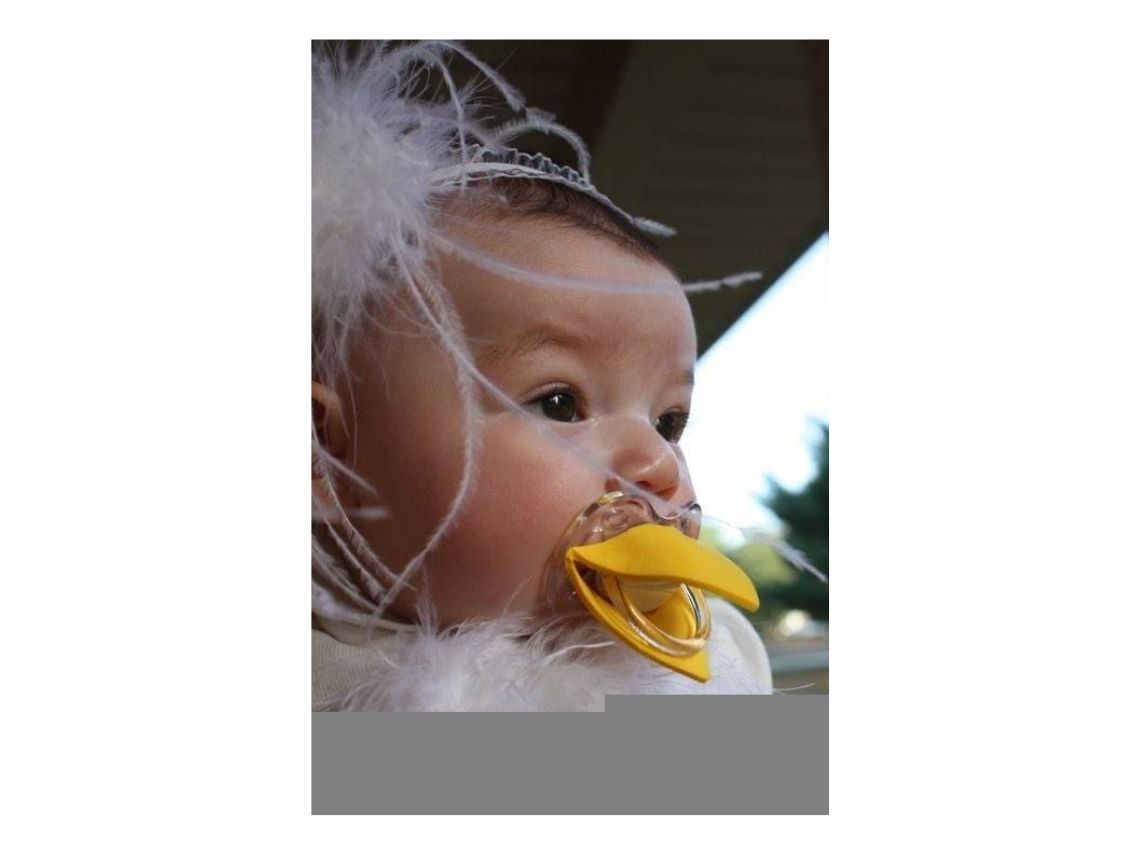 En este disfraz casero el chupete es el mejor aliado: tendréis que colocar un pico de gomaeva al chupete y forraréis de plumas blancas una camiseta del peque.