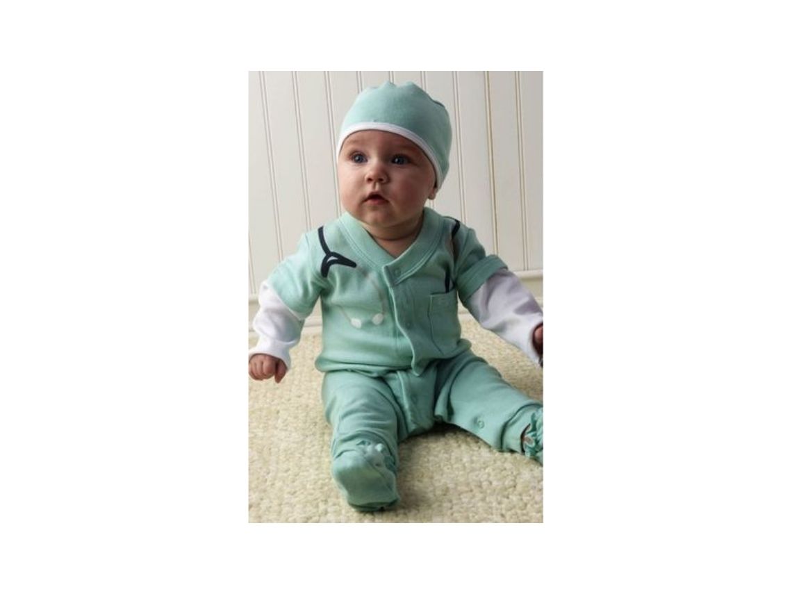 Si tenéis un pijamita enterizo verde, ¡tenéis el disfraz de vuestro hijo! Solo tendréis que fabricar un gorrito en el mismo tono y pintar alrededor del cuello un fonendoscopio.