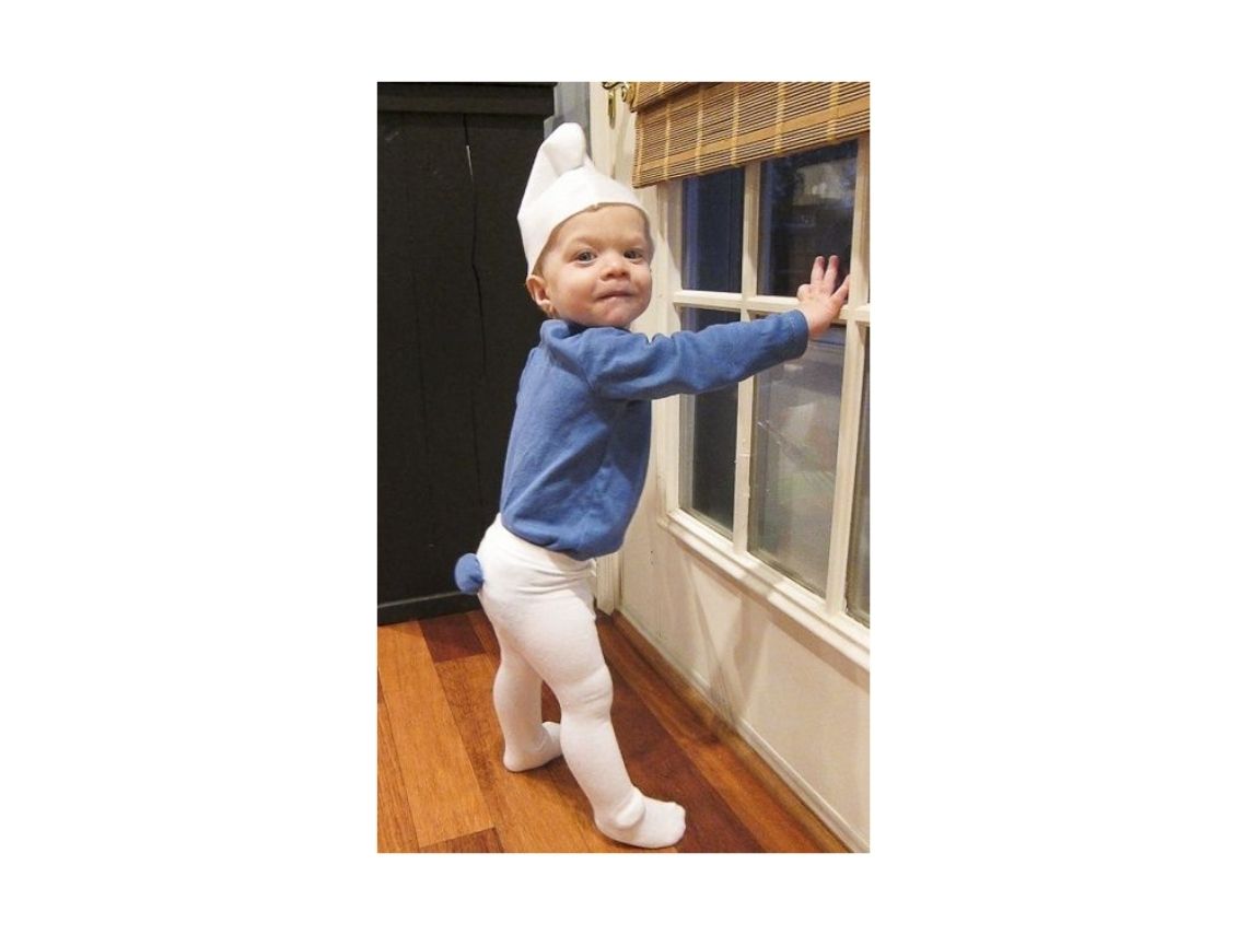 Otro disfraz súper sencillo y vistoso. Una camiseta o jersey azul, unas mallas blancas y un gorrito que podéis hacer con un trozo de fieltro blanco y con ayuda de alguna plantilla descargable.Eso sí, no olvidéis no usar maquillaje para la cara.