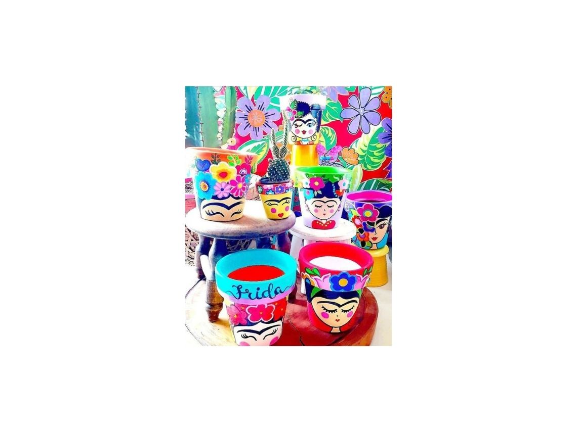 Frida Kahlo es uno de los personajes feministas por antonomasia. Para explicar a los niños quién era, tanto ella como otras mujeres relevantes, podéis optar por decorar macetas como la propuesta de la foto.