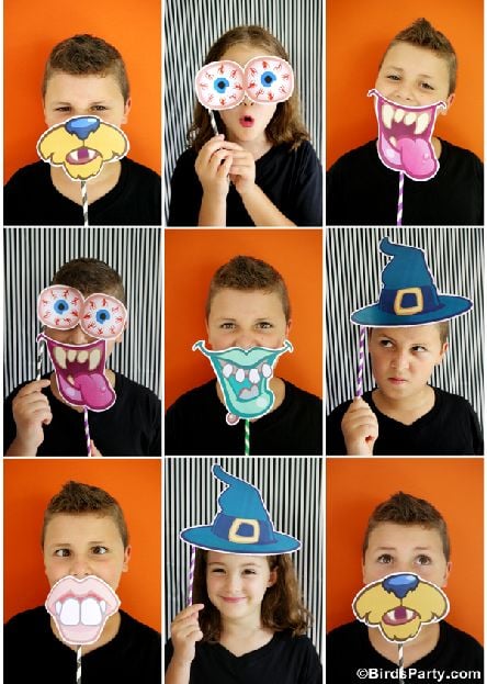 Una pajita para beber y papel ¡lista la máscara de Halloween! Estos diseños son perfectos para niños que no les gustan taparse la cara ni ponerse gorros.