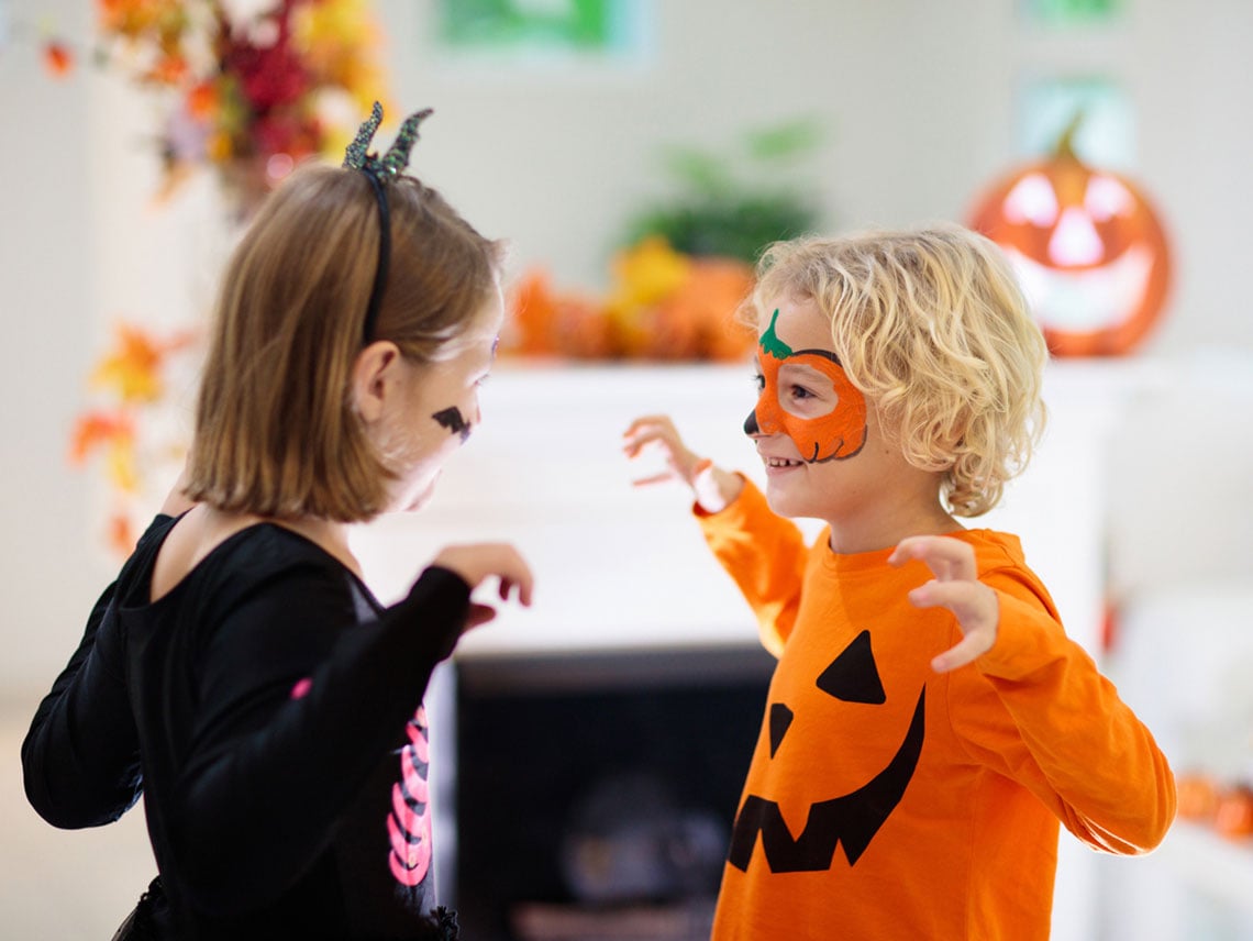 Pero, si hay algo típico en Halloween, son las calabazas. Hagamos una careta de una de ellas. ¡Solo es necesario fieltro e imaginación!Incluso, podéis también dibujar directamente las calabazas en las caras de vuestros niños... ¡mira qué original!