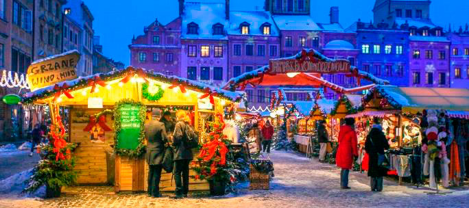 El famoso mercado festivo en el interior de las murallas del casco antiguo de Varsovia cuenta con 60 casetas de madera tradicionales que asoman entre la nieve para ofrecer el tradicional vino caliente con especias y deliciosos dulces. Este es el mercado perfecto donde comprar regalos y fruslerías y, para los amantes de la “blanca Navidad”, ¡en Varsovia está casi garantizada!