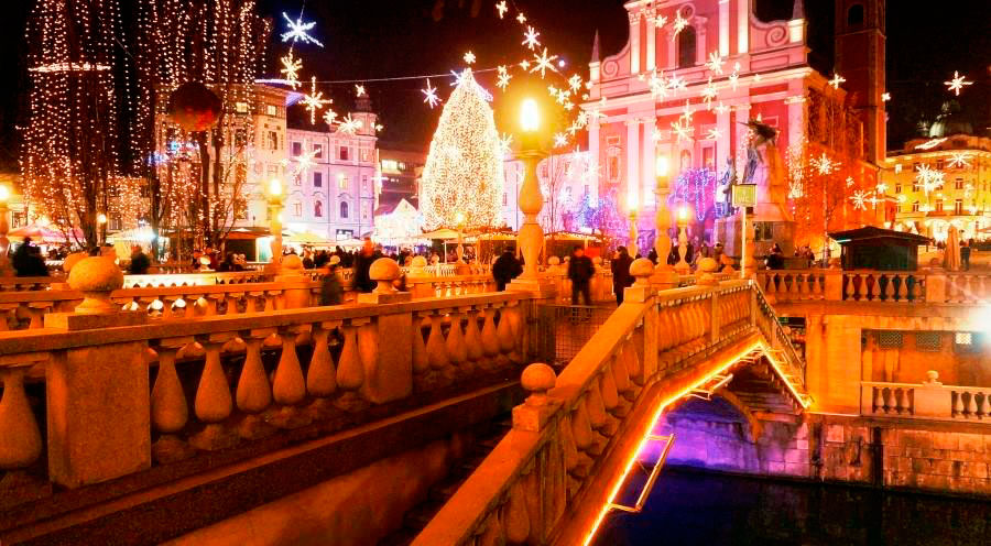 Los habitantes de la ciudad hablan del “Diciembre Festivo” previo a la Navidad, durante el cual Liubliana se transforma en un gran mercado navideño al aire libre. En la Feria de Navidad, famosa por su atmósfera alegre y vibrante, podrás degustar vino caliente especiado, tés, licores, salchichas y varios platos a la parrilla en un sinfín de puestos de comida y bebida.