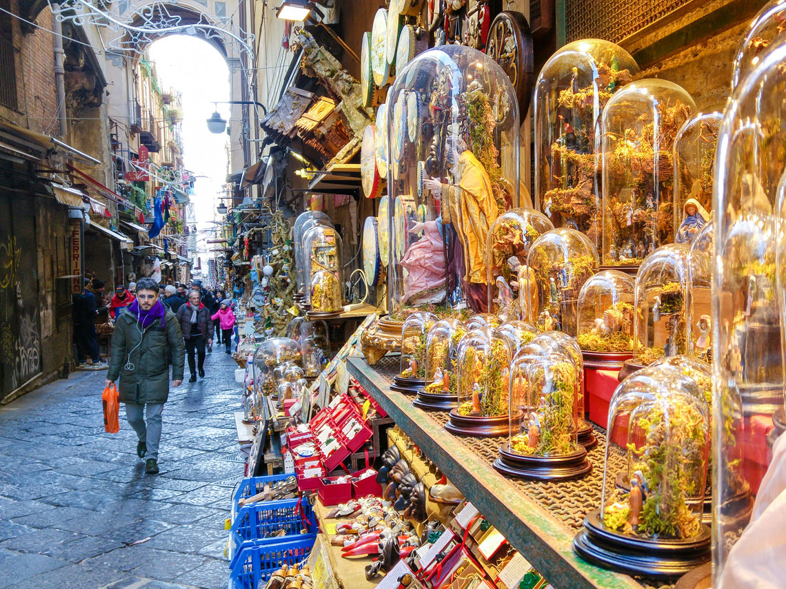 Aunque sus puestos de artesanos, dedicados a la fabricación de pesebres y figuras del Belén, están abiertos todo el año, hacer por ellos un recorrido en Navidad tiene un encanto especial por la cantidad de turistas, italianos y de fuera, que en esa época los visitan. La Navidad napolitana es muy conocida también por hacer de la ciudad un espectáculo al aire libre en el que conviven música, tradición, teatros, artistas, gastronomía...