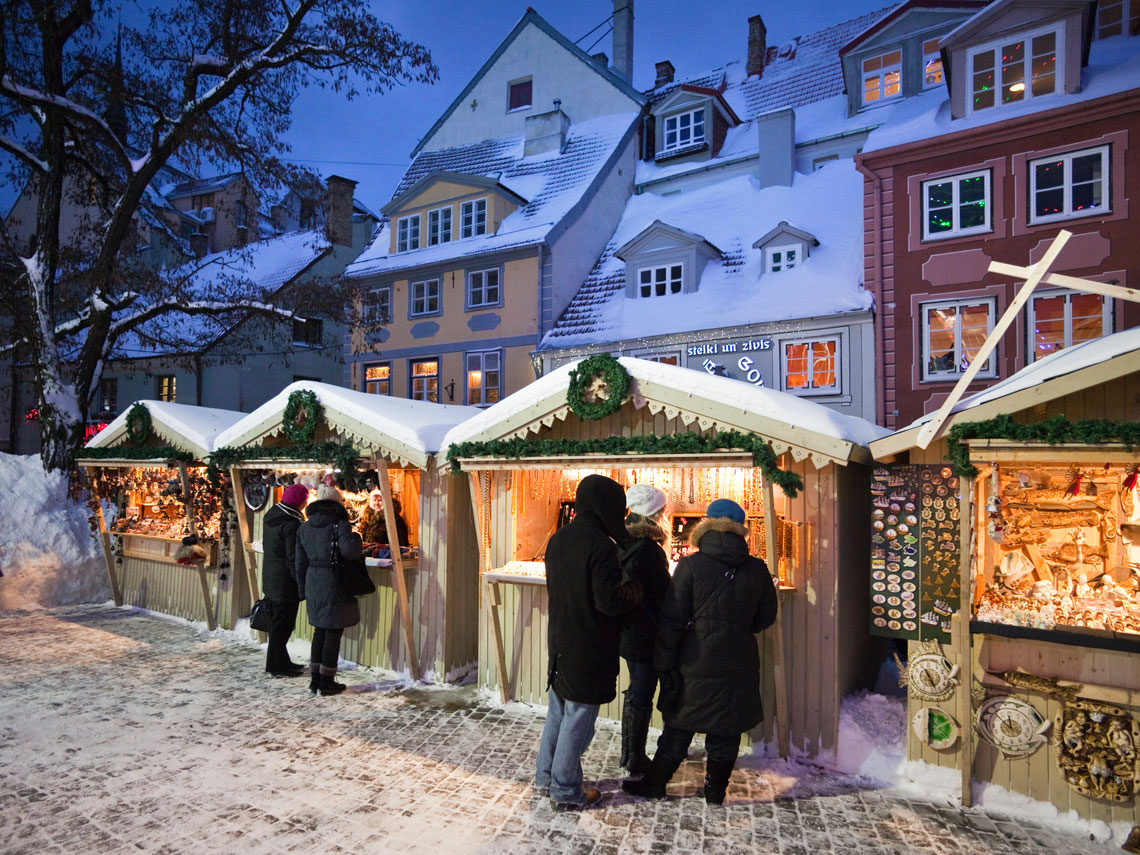 El mercado de Navidad de Riga se celebra en el centro histórico de la ciudad y se prolonga hasta la Navidad ortodoxa, el 9 de enero. Los puestos proponen al visitante objetos como velas y juguetes de madera, joyería de Letonia, ámbar del Báltico, guantes, sombreros, bufandas, calcetines de lana, y degustar platos típicos de la gastronomía local como vino caliente con especias, miel letona o almendras tostadas.
