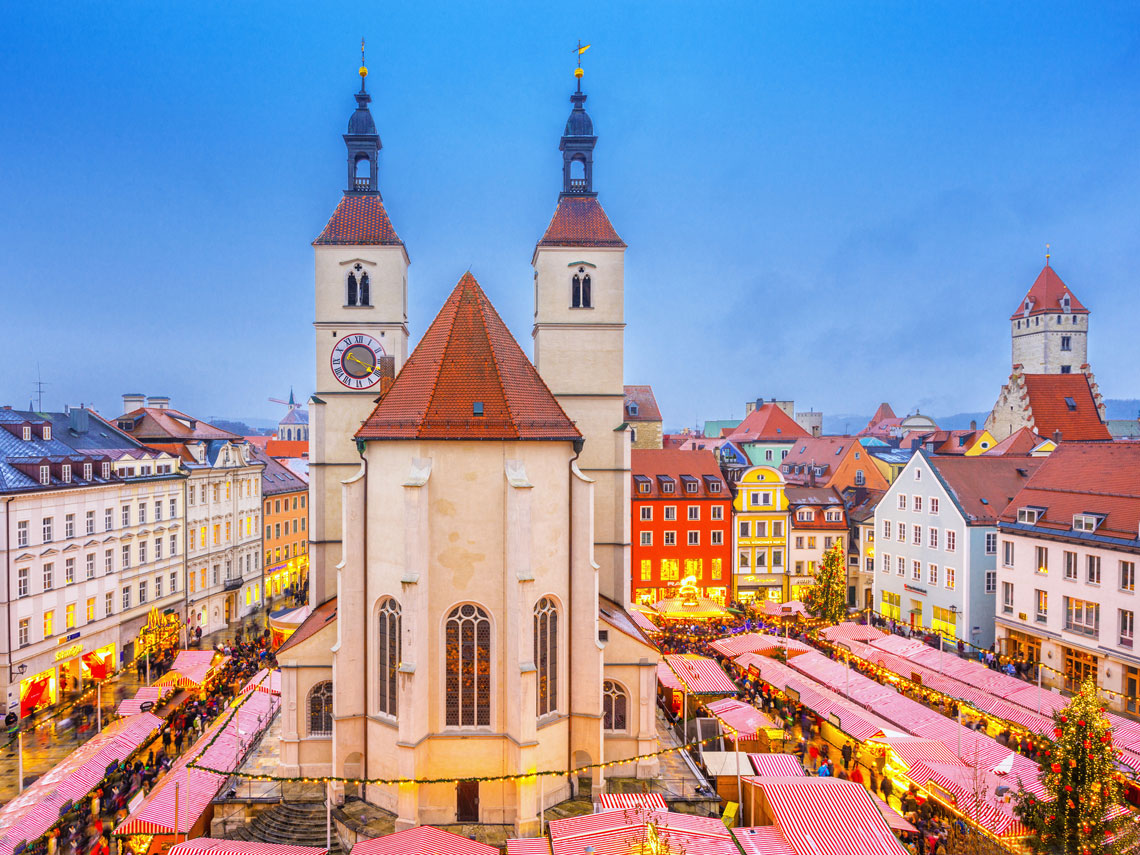 La ciudad alemana de Regensburg celebra en su casco histórico un mercadillo navideño en el que podremos encontrar adornos navideños, belenes con figuras talladas en madera, juguetes e ideas prácticas de regalo. En un marco incomparable, este mercadito también nos propondrá degustar auténticas delicias para el paladar como las tradicionales salchichas de Baviera.