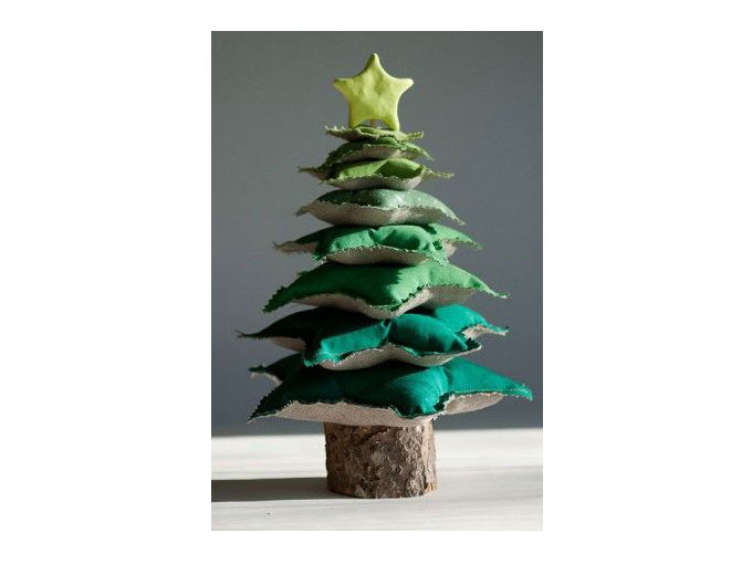¿Tenéis cojines viejos en casa? Podéis forrarlos con un trozo de tela verde y crear un árbol de Navidad de lo más original. ¡Incluso la estrella está hecha con cojines!