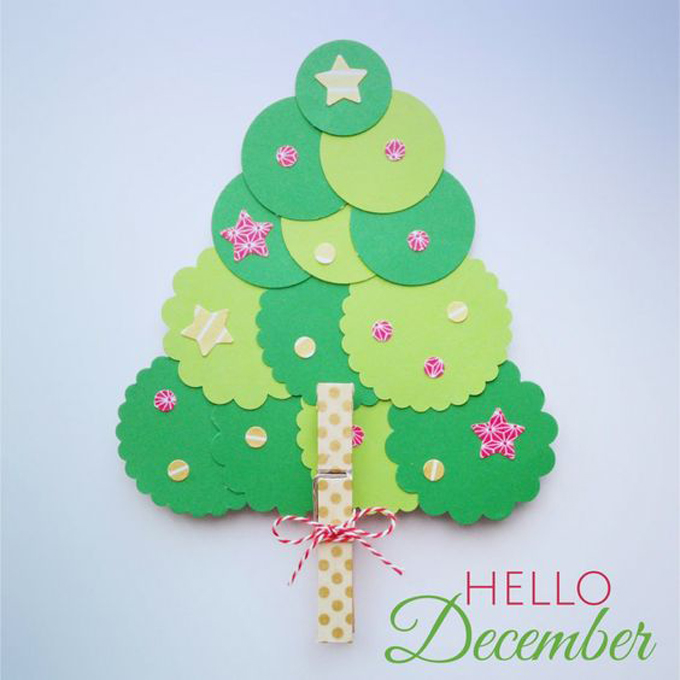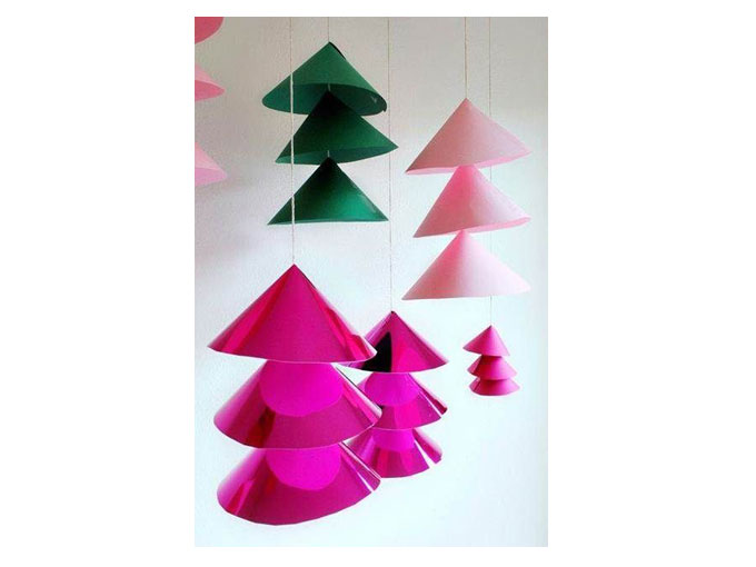 Este árbol nos ha encantado. Es tán fácil como doblar unas cuantas cartulinas en forma de cono y unir todos con un trocito de hilo.