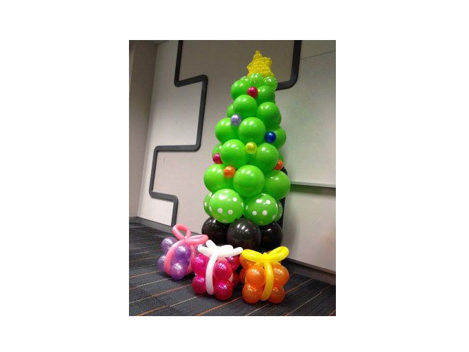 Vamos a inflar un montón de globos verdes porque serán nuestro árbol de Navidad. ¿El truco? Inflar unos más grandes y otros más pequeños y colocarlos estratégicamente.