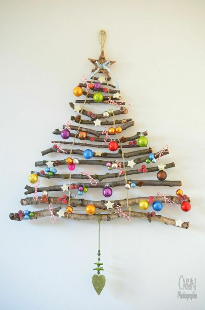 ir a recgoer ramas puede ser un plan perfecto para una tarde otoñal. Cuando las tengamos todas podemos unirlas con un trozo de cuerda a cada extremo y decorarlas con adornos de Navidad.