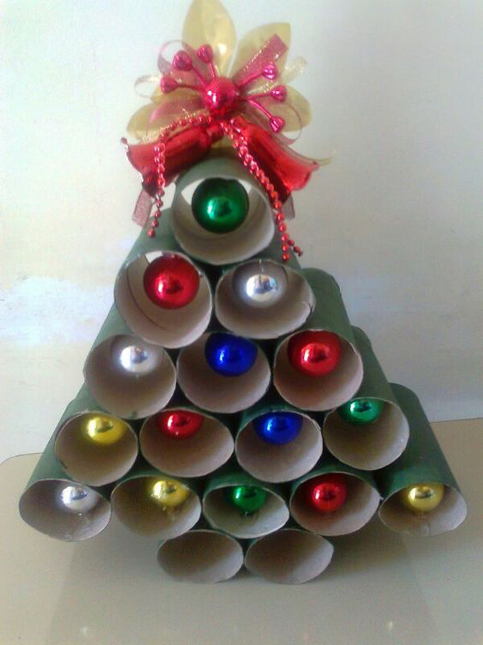 Un montón de hueveras pintadas con témpera verde será todo l oque necesitaréis para crear este magnífico árbol de Navidad. ¡Quizás es una buena idea para decorar una casa de campo!