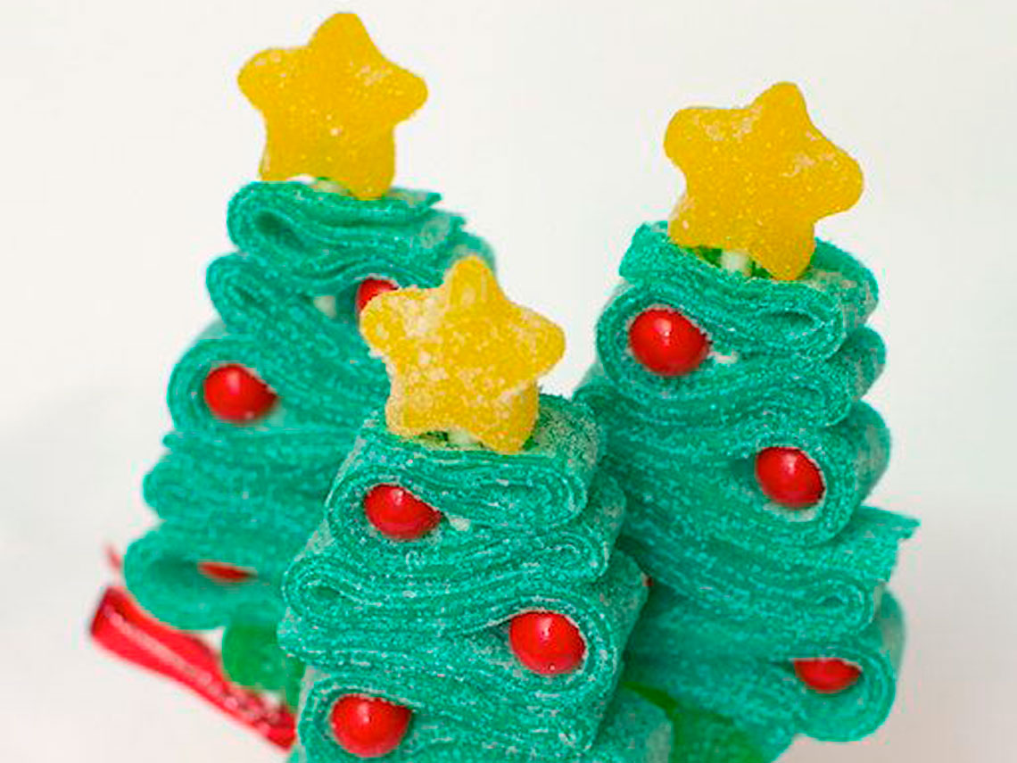 Compra las típicas tiras de regaliz verde, enróllalas haciendo zig zag y decóralas con guindas. ¡Así de fácil!