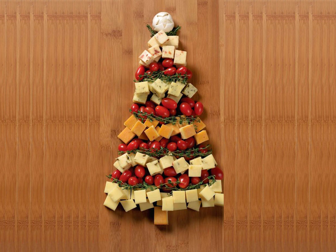 Combina distintos quesos con tomates cherry y un poquito de albahaca o perejil y construye un árbol de Navidad rico además de original.