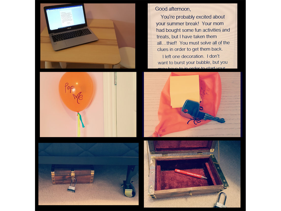 Se trata de crear una historia y pasar una serie de obstáculos para ir superando pruebas y lograr escapar de la habitación o conseguir un regalo al final. Nosotros desarrollaremos la imaginación y los niños su ingenio.