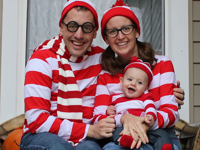 ¿Dónde está Wally? ¡A ver quién os encuentra! Una mamá, un papá, un bebé, ¡cualquiera puede usar este disfraces! Además, es muy fácil, pues valdría con una camiseta de rayas, un gorro y unas gafas y ya está, ¡a escondernos!