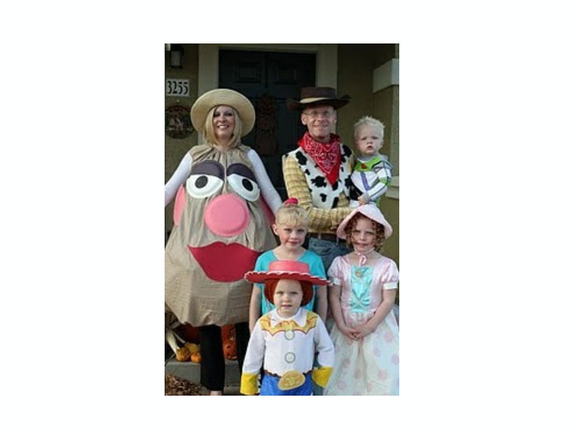 Del éxito infantil Toy Story nació este personaje tan adorado por el público infantil y que nos deja un disfraz familiar sumamente tierno y gracioso. Puede ser muy divertido crear juntos un Potato para cada uno con características diferentes. ¿Le ponemos bigote? ¿Y unas gafas para mamá? ¿Pelo? ¿Un chupete para el bebé?