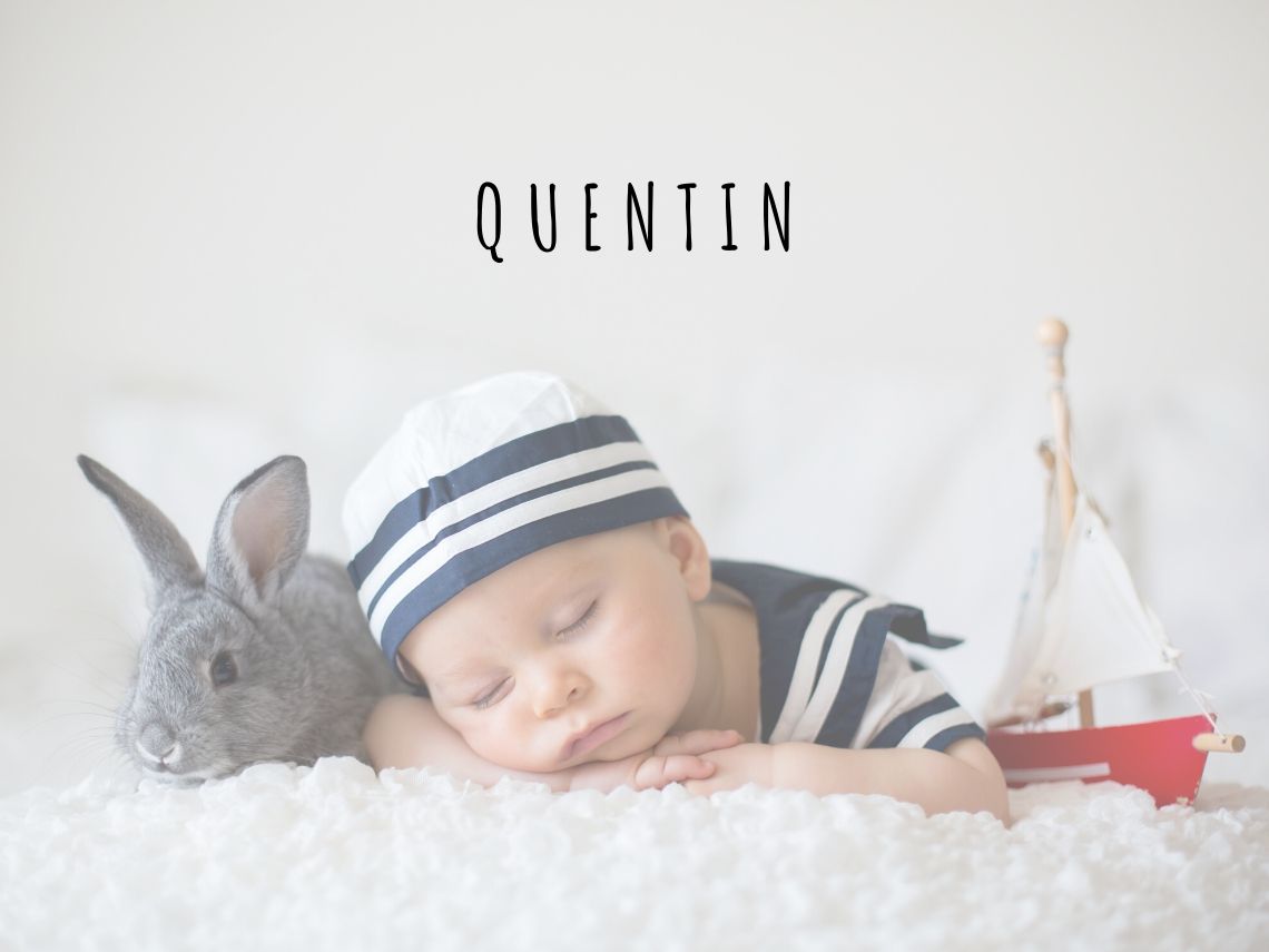 Se trata de la forma gallega de Quintín, cuyo significado es “quinto”. Existe también el nombre en sí de Quinto, relativo al orden numérico de nacimiento en una familia. Su origen es latino.