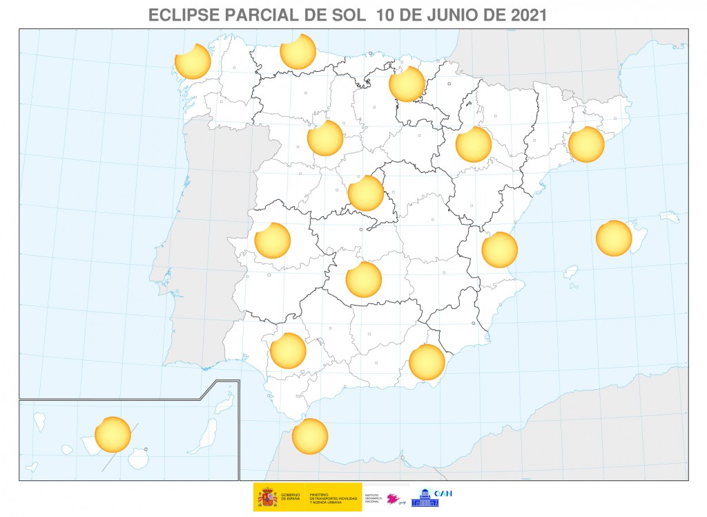 A lo largo de la mañana del jueves 10 de junio de 2021 se producirá un eclipse parcial de Sol que será visible desde España.