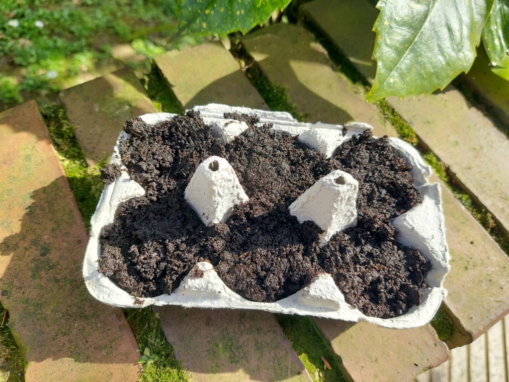 Primero las llenamos con sustrato, después esparcimos las semillas o colocamos el esqueje y por último regamos poco pero con frecuencia para que no se llegue a empapar el cartón.