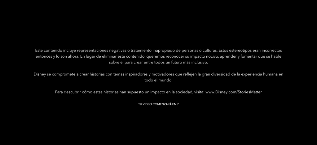 Como decimos, no es un mensaje que aparezca en todo el contenido de la plataforma: solo en aquellos largometrajes que han recibido críticas de algún tipo (tales como Peter Pan, Dumbo, La Cenicienta, Blancanieves o el Libro de la Selva).