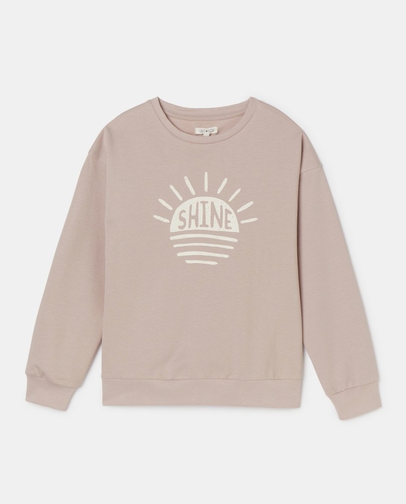 Una sudadera con cuello a la caja, de algodón, con una ilustración que nos recuerde siempre a los atardeceres del verano y un color ideal para estos primeros días de curso. Y solo cuesta siete euros.