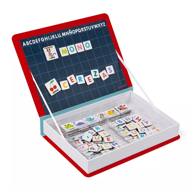 Para expresarse mejor los juguetes con letras son una opción ideal. Puedes optar por un maletín con el alfabeto, como este magnético -19,95 euros- que puedes llevarte a cualquier sitio.