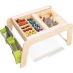 Por eso, la primera opción para comprar una mesa sensorial Montessori para casa que no sea tan costosa es dedicar mucho tiempo a buscar y comparar productos y precios. Sí, como ves, no podemos hacer magia, desgraciadamente. Así, con paciencia, es como hemos encontrado mesas sensoriales estilo Montessori por precios “más razonables”, pero todavía costosos para la mayoría de los bolsillos, porque superan los 130 euros. Te dejamos dos ejemplos distintos: esta, a la venta en Etsy, y esta otra, una mesa de La Redoute.