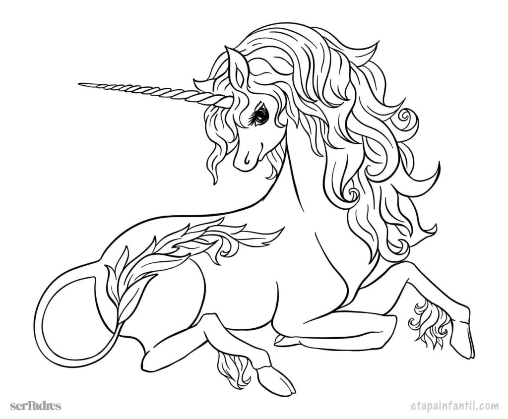 Descarga aquí el dibujo de unicornio descansando para imprimir y colorear