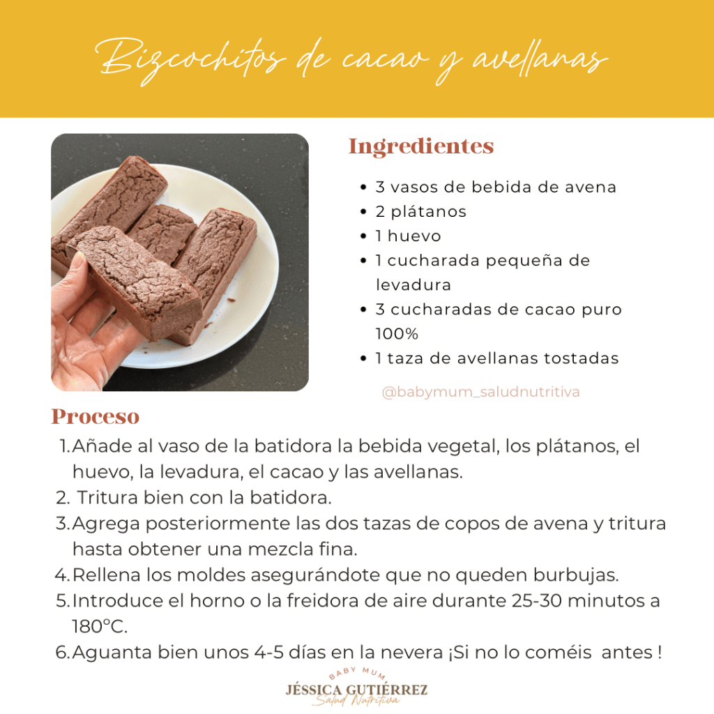 Esta receta de “mini bizcochitos” de cacao, avellanas y avena que nos ha dejado Jessica Gutiérrez es perfecta para eso, para disfrutar juntos, para compartir tiempo, para charlar de lo que ha ocurrido durante la semana y por supuesto, para saborearlos después.
