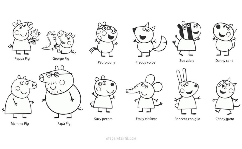 Descarga aquí el dibujo de todos los personajes de Peppa Pig para imprimir y colorear.