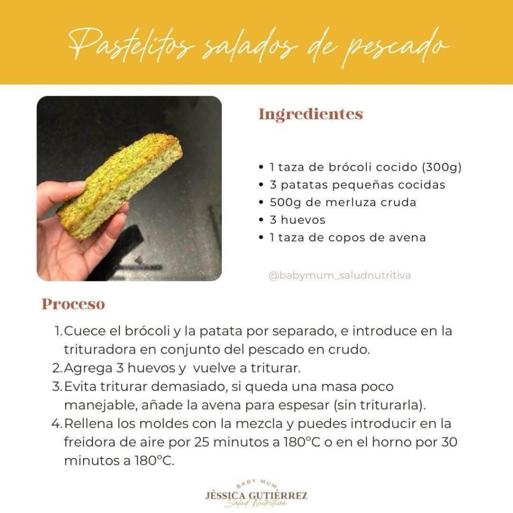Así son las propuestas culinarias que comparte la nutricionista materno-infantil Jessica Gutiérrez en sus redes (@babymum_saludnutritiva) y de entre todas ellas, hoy vamos a destacar una deliciosa receta de pastelitos salados de pescado con la que, seguramente, a niños y mayores se os hará la boca agua.