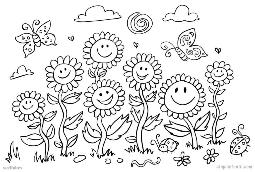 Descarga a continuación 10 dibujos de flores y primavera para imprimir y colorear.