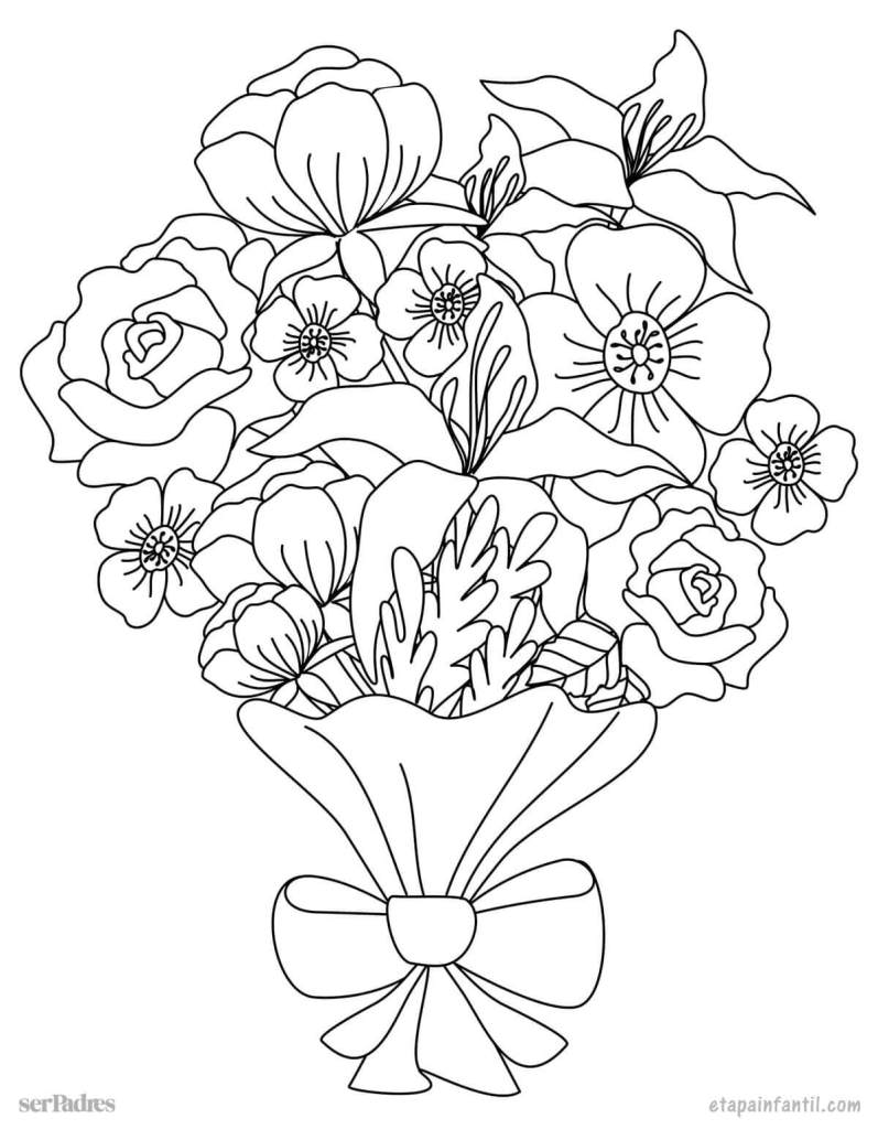 Descarga aquí el dibujo ramo de flores para imprimir y colorear.