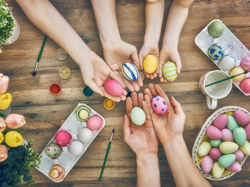 También podéis hacer manualidades para pintar los huevos de Pascua para, al día siguiente, esconderlos y que los niños los encuentren por toda la casa.