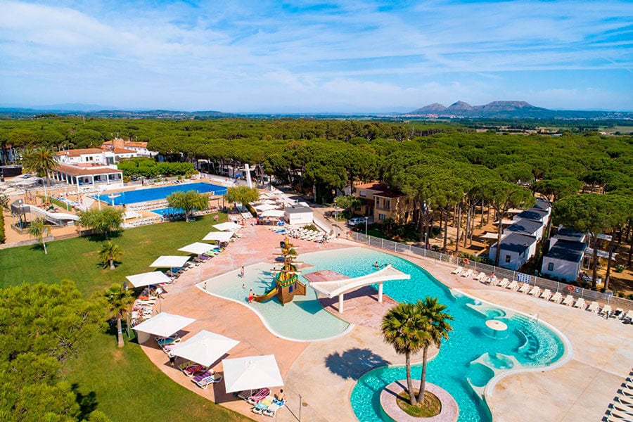 - Camping Bungalow Park Las Dunas, en Sant Pere Pescador. Este camping tiene Aquapark de piscinas con toboganes y juegos acuáticos, zona deportiva con pistas de tenis, fútbol y voleibol y parques infantiles con balancines, toboganes y columpios.