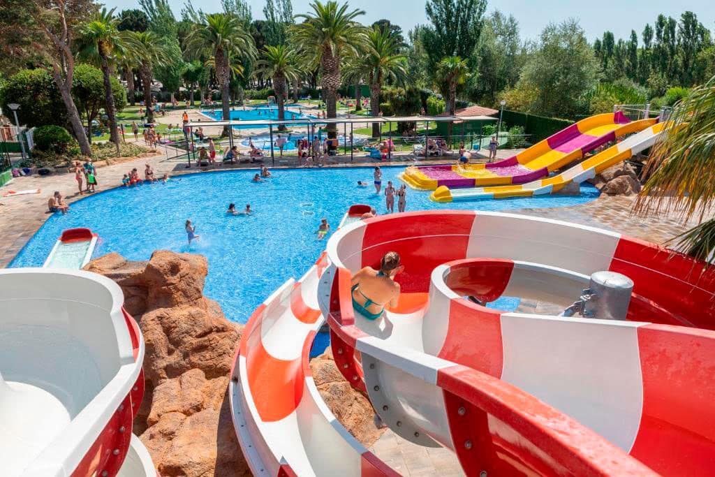 - Playa Montroig Camping Resort, en Tarragona. Ubicado en una de las playas más bonitas de la Costa Dorada y muy cerca de Port Aventura y la Tarragona romana, en la zona del Priorato, una comarca que vale la pena visitar. El camping tiene piscinas con toboganes y juegos acuáticos interactivos. También hay un miniclub y una zona de juegos.