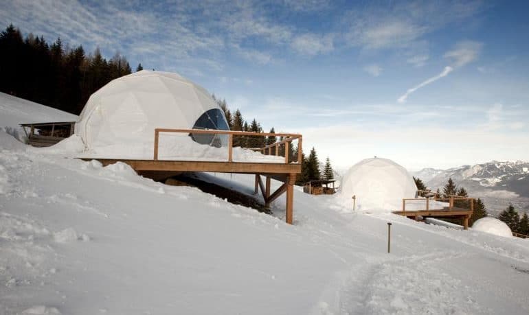 Si queréis pasar una Navidad mágica e inolvidable, nada mejor que viajar a este original hotel suizo, situado a 1.500 metros de altura. Se trata de un eco-complejo con 15 cabañas geodésicas, tipo iglú, en las que no os faltarán las comodidades a las que estáis acostumbrados ya que cuentan con baño, ducha y una estufa de leña para que os calentéis cuando llegue la noche.