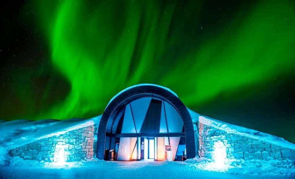¡Qué mejor opción para vivir la Navidad que apostar por un alojamiento en pleno Círculo Polar Ártico! Se trata de uno de los hoteles de hielo más impresionantes del mundo, en el que podéis pasar la noche en una habitación de hielo, eso sí, arropado con pieles de reno y un saco de dormir térmico. Los más atrevidos podéis aventuraros a subiros en una moto de nieve o un trineo tirado por perros y emprender rumbo hacia la aurora boreal.