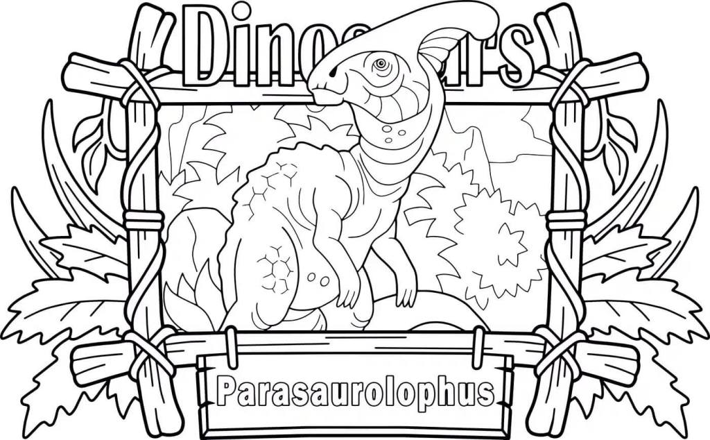 Una excelente manera de enseñarles a los niños algunas de las especies de dinosaurios que habitaron la Tierra hace millones de años es a través de dibujos como este. En la imagen aparece un parasaurolophus en su entorno natural, posando para una foto. Sin duda, un recurso ideal para que los peques puedan aprender a diferenciar esta especie mientras dan rienda suelta a su imaginación coloreándolo con sus tonalidades preferidas.