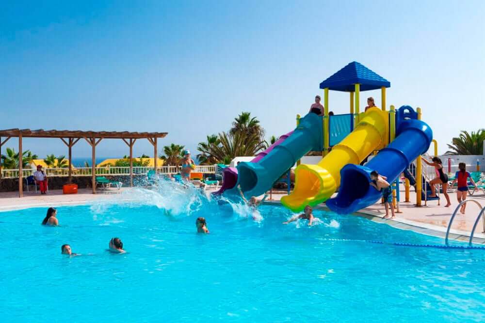 Si preferís estar cerca de una de las mejores playas de la isla, este es el sitio perfecto para alojarse con los niños. Se encuentra situado en la Playa de Corralejo, famosa por su blanquísima arena, donde podréis practicar con los niños diferentes deportes acuáticos. También podréis dar paseos a caballo, practicar senderismo por las dunas, navegar en barco o emprender rutas de quad. No obstante, si preferís quedaros en el hotel también hay muchísimas opciones para los más pequeños: hay un parque infantil, una piscina, una sala de juegos, un miniclub y espectáculos en vivo a cargo de animadores profesionales.