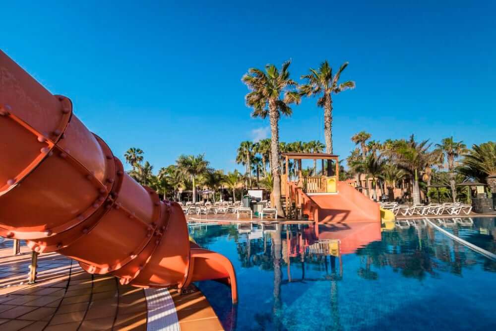 Este hotel situado en primera línea de la playa de Sotavento, en el parque natural de Jandía, es una de las mejores opciones para alojarte con tus hijos en la isla. Cuenta con una amplia zona infantil que incluye piscina con toboganes y tiene un miniclub en el que los niños podrán jugar, hacer manualidades y divertirse a su antojo. Si tu pequeño prefiere las aventuras, podrá practicar un poco de ejercicio en la pared de escalada o lanzarse en las tirolinas y, si cuando llega la noche aún tiene energía, podrá disfrutar de las fiestas infantiles que organizan en la minidisco. No obstante, también hay actividades pensadas para toda la familia: podréis dar un paseo en barco con los peques, pasar la tarde jugando al paintball, irse de excursión en segway o emprender rutas cortas sobre camellos.
